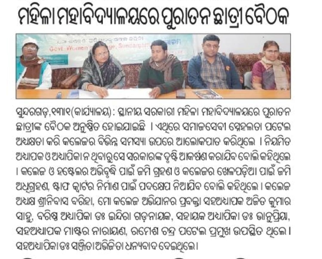Alumni of Government Women's College, Sundargarh, often reflect a diverse array of experiences and accomplishments. Founded with a mission to empower women through education, the college has likely produced graduates who have gone on to excel in various fields, ranging from academics and research to entrepreneurship and public service. The alumni network of Government Women's College, Sundargarh, probably spans across generations, with individuals who have made significant contributions locally, nationally, and even internationally. Many of these alumni likely hold key positions in government, education, business, and non-profit sectors. The college's alumni association may organize regular events, reunions, and networking opportunities to facilitate connections among its members. These gatherings serve not only as occasions for reminiscing about shared experiences but also as platforms for collaboration and mentorship. Given the emphasis on women's empowerment at Government Women's College, Sundargarh, its alumni are likely advocates for gender equality and social justice. They may be involved in initiatives aimed at uplifting women and girls, both within their communities and on a broader scale. Overall, the alumni of Government Women's College, Sundargarh, likely embody the values of education, empowerment, and community engagement instilled by their alma mater, making significant contributions to society in various capacities..