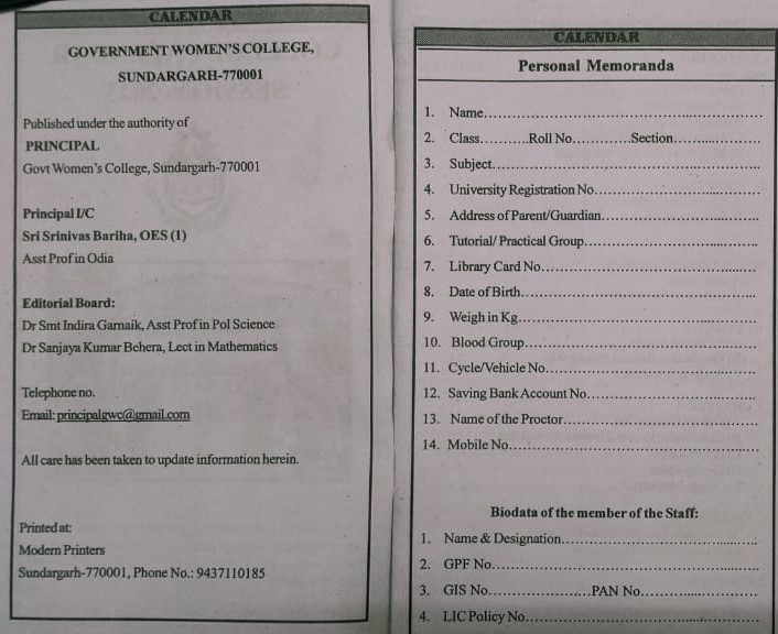 The college magazine ‘Madhuruta’ is published in every two years which provides excellent opportunities for the expression of thoughts and ideas of our young writers and artists. The editorial board of the college magazine consists of some staff members nominated by the Principal and two members from the department of literature and humanities. The staff members of the editorial board are the editors of the two sections of the magazine Odia, English and one of them will be the chief editor. Plagiarism is serious offence which has been kept in the mind of the editorial board before publishing the articles. College Calendar is published every year for the students and teachers to know about the college rules and regulation, exam, admission details, extra-curricular activities, teachers, associations etc.